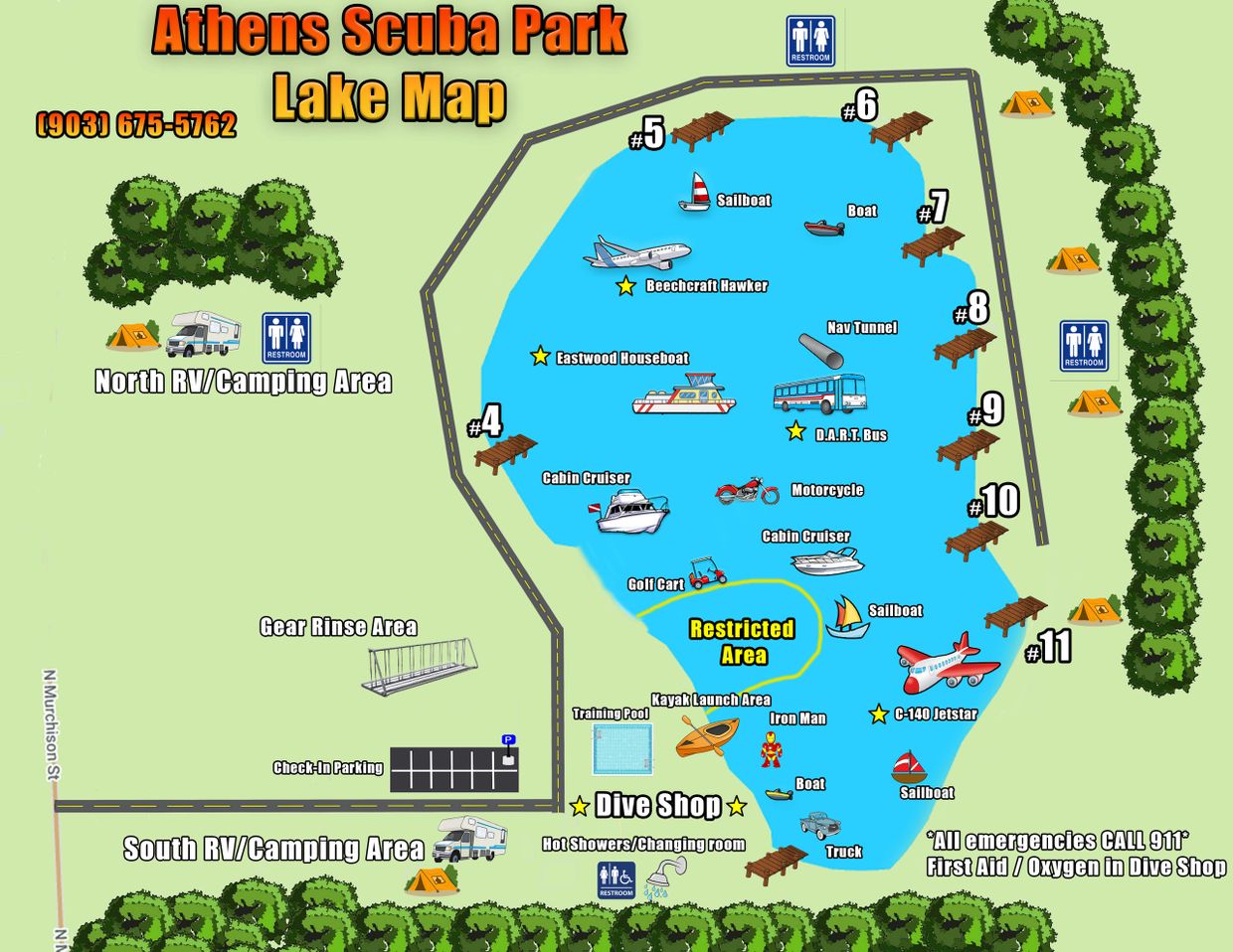 Athens Scuba Park is your ultimate Scuba Diving and Snorkeling destination! An all-inclusive dive facility that provides sales, service, classes and travel! With 20 + sunken wrecks and 10 diving docks around the lake, we invite you to come explore and enjoy!